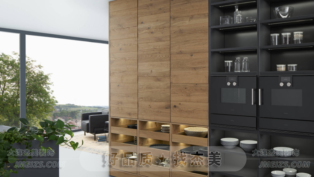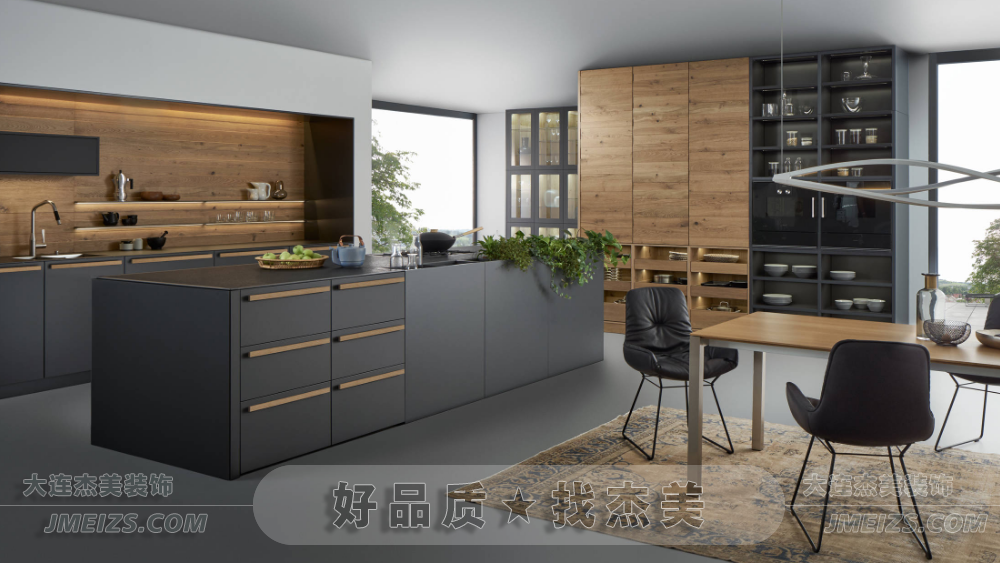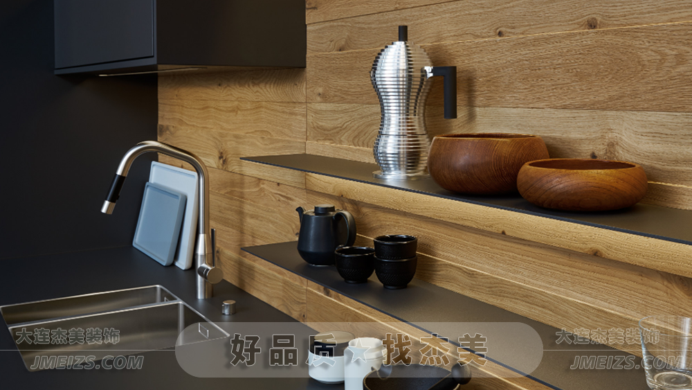 大連裝修之廚房設計方案f:實木金屬與石板/白色灰色原木色/極簡現代廚房式設計
