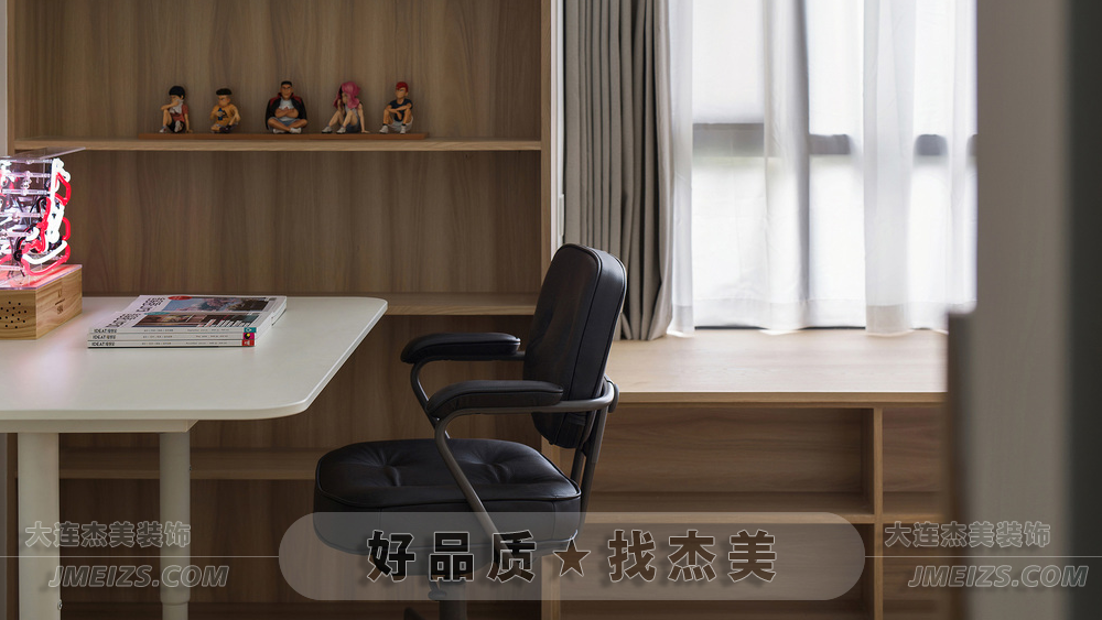 主臥自然靜謐的風格在兒童房也得到了延續,以兒童的身高設計貼心的木紋護墻板,開放的收納方式為兒童房增添了些許節奏和韻律,供孩童自由展示自己的興趣愛好,記錄每一刻的成長印跡,如同詩人在詩篇中描繪生活,記錄每一刻的美好。