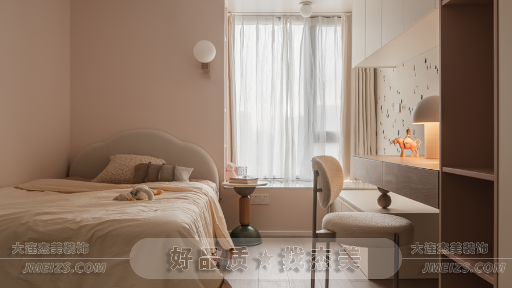兒童房的設計充分考慮了孩子的成長需求。完善的存儲系統不僅方便孩子整理玩具和書籍,還為其提供了一個有序的生活環境。溫和的茱萸色為這個空間增添了一絲活潑的氣息,使得整個空間既溫馨又不失童趣。