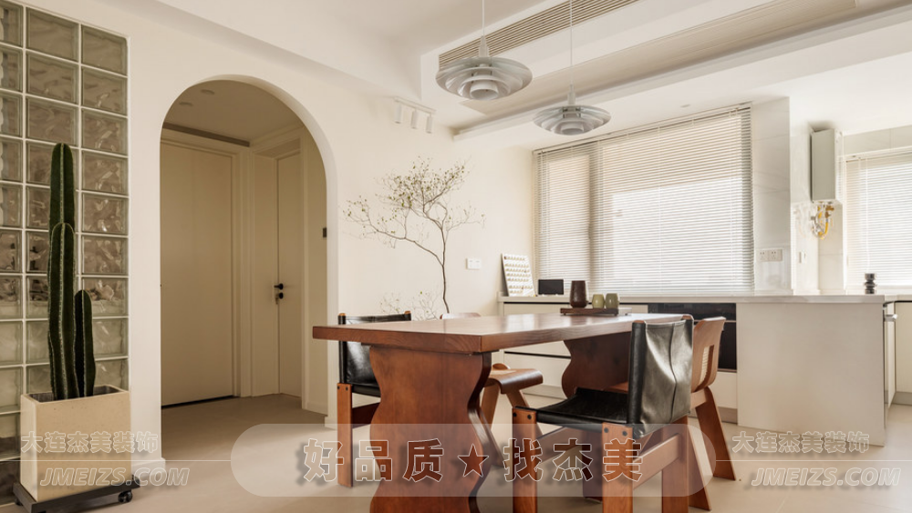 靠窗而立的餐廳空間,經(jīng)過廚房隔墻的拆除,采光得到了明顯的提升,整體布局更加開闊。