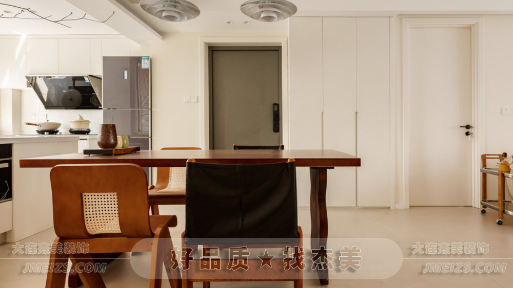 拆除餐廚區(qū)的隔墻,實(shí)現(xiàn)了半開放式布局,這不僅提升了廚房的空間感,還增加了活動(dòng)空間的靈活性。