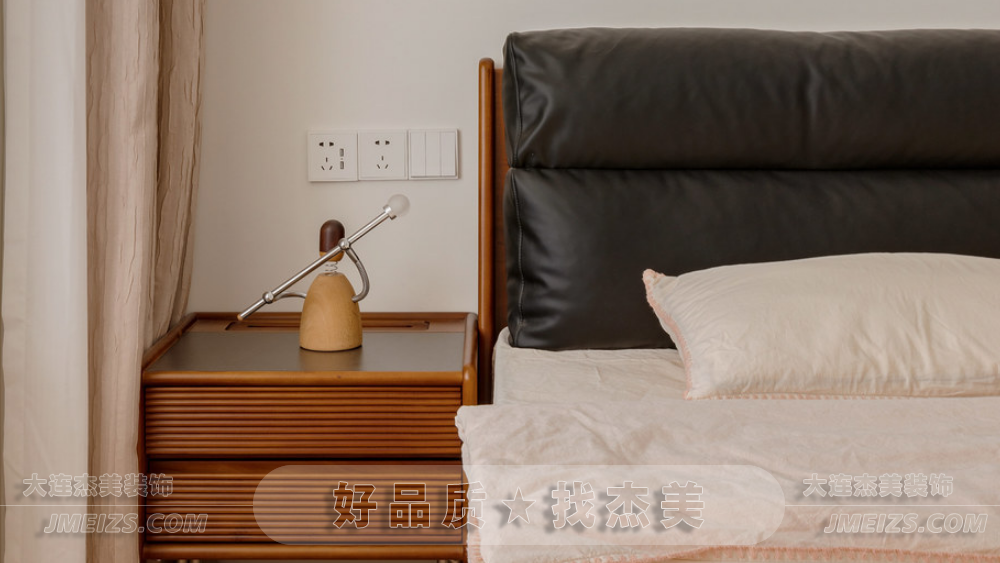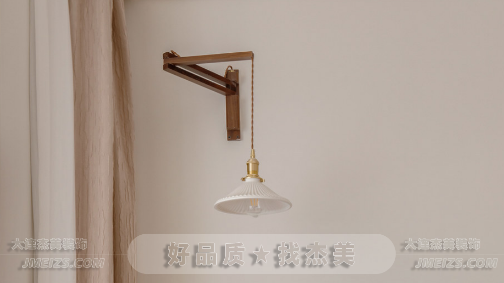 床頭復古的胡桃木壁燈不僅具有調節角度的功能,更為看書或休息時提供了舒適的照明體驗。
