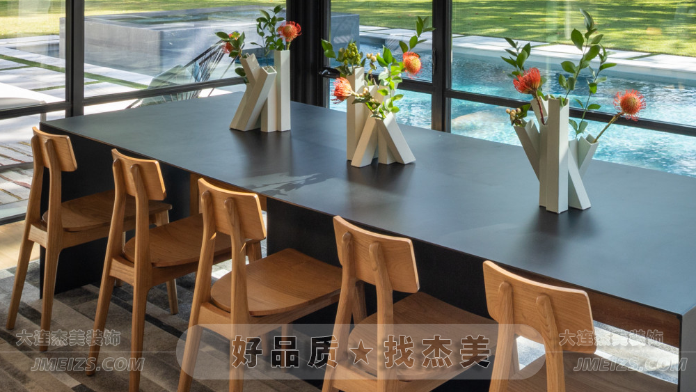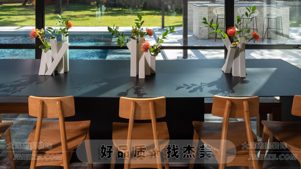 整個餐廳的設計,都體現了現代美學的理念。無論是簡約的家具選擇,還是通透的落地窗設計,都展現了一種簡約、現代、自然的美學理念。