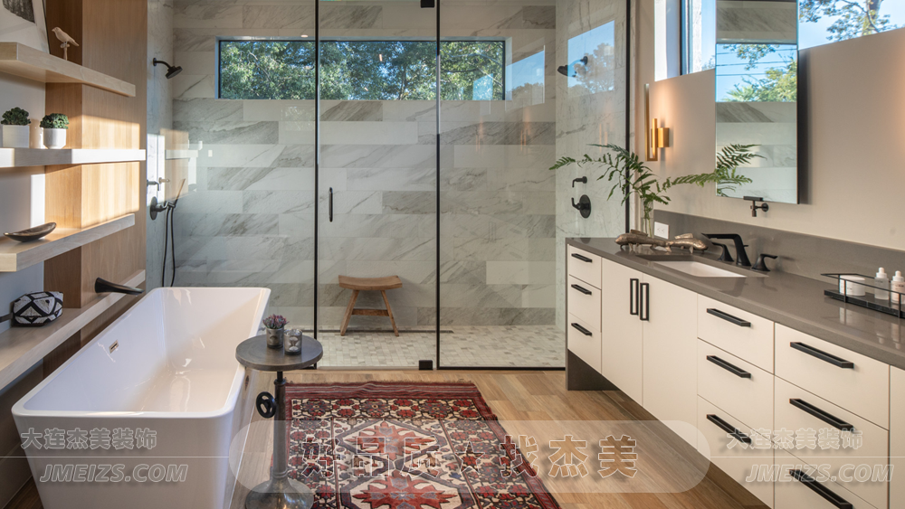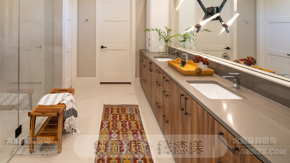 整個(gè)浴室的設(shè)計(jì),都體現(xiàn)了現(xiàn)代美學(xué)的理念。無(wú)論是簡(jiǎn)約的家具選擇,還是溫暖的色調(diào),都展現(xiàn)了一種簡(jiǎn)約、現(xiàn)代、自然的美學(xué)理念。在這里,沐浴變成了一種與自然親近的體驗(yàn),體驗(yàn)現(xiàn)代生活的舒適與便捷。