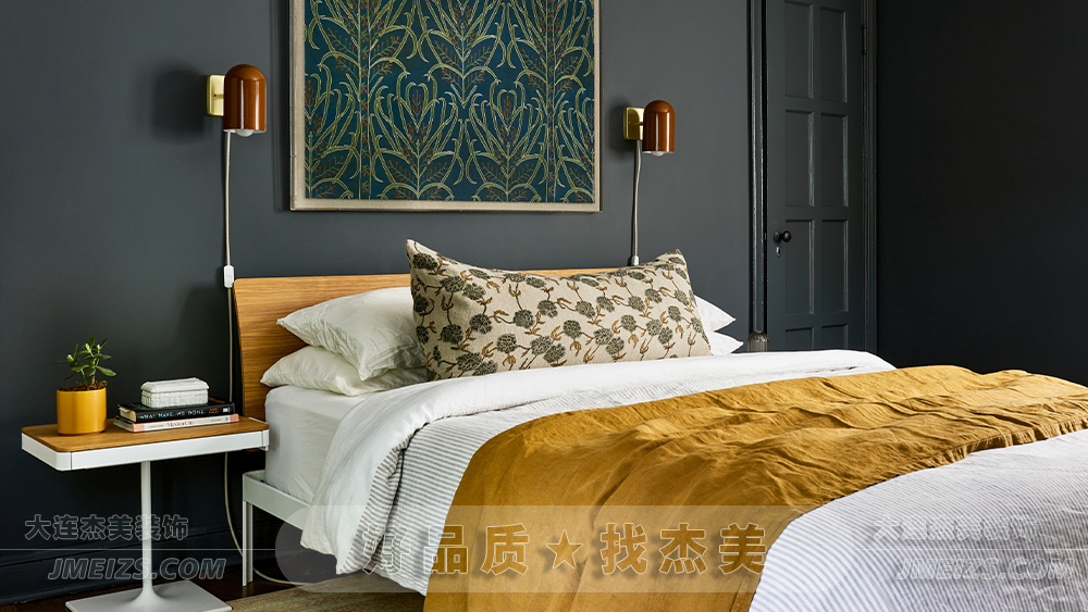整個臥室的設計不僅僅是對色彩與材質的巧妙運用,