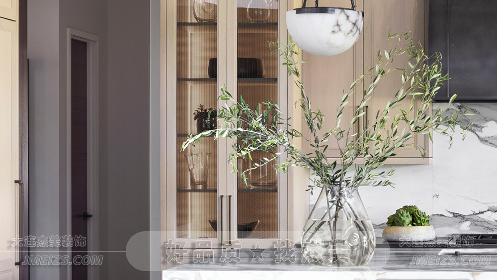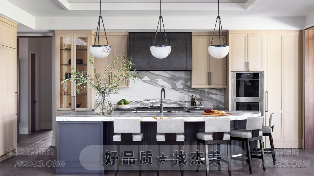 優(yōu)雅的大理石臺面與天然木紋的柔和對話,