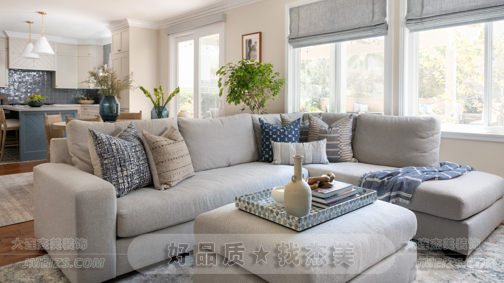 沙發是客廳的核心,而這款淺灰色的布藝沙發則是整個空間的焦點。