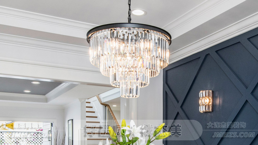 視線流轉至細節之處,墻壁上的裝飾燈與吊燈相呼應,