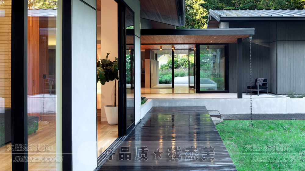 大面積的玻璃門不僅增加了室內外的透明度,