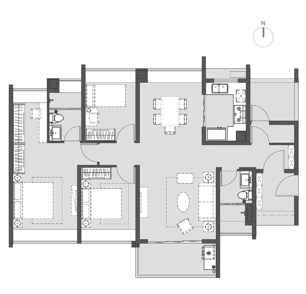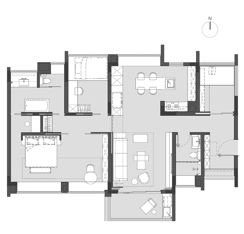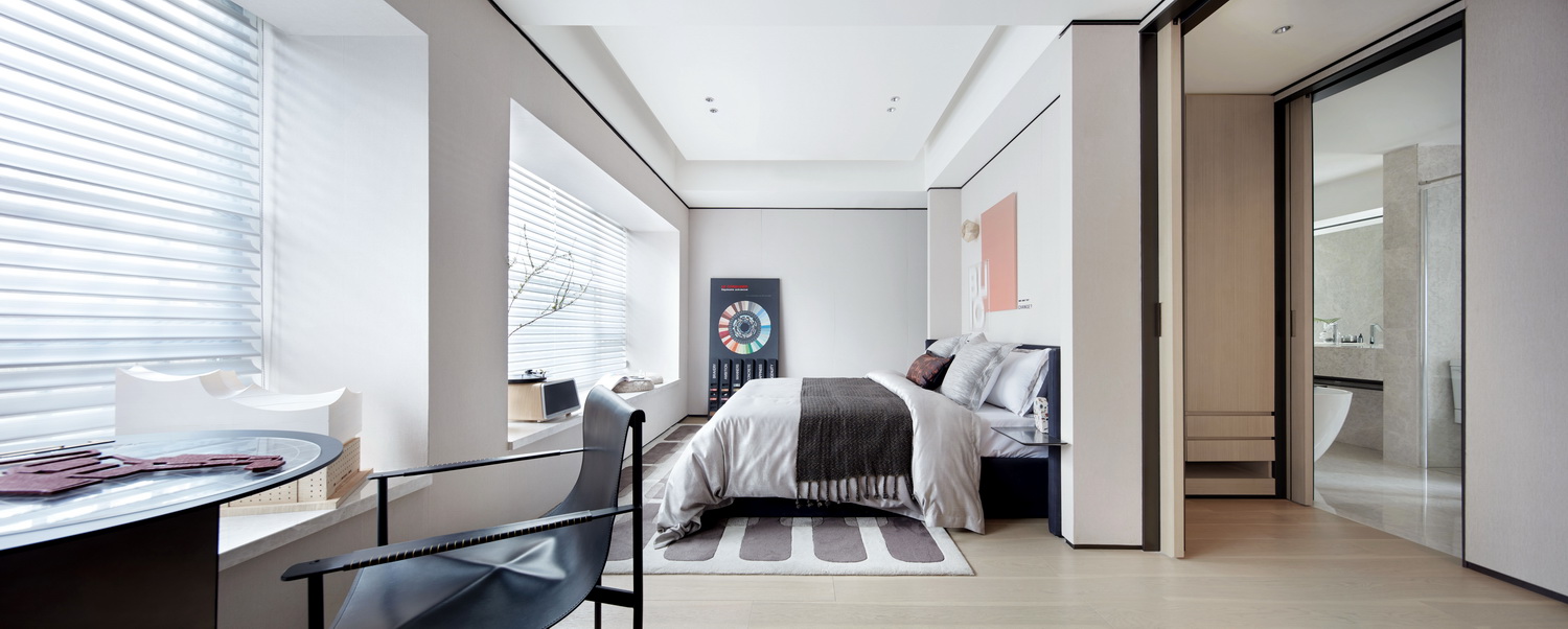 主臥干濕分區,大膽取消隔墻,帶來全新體驗。空氣南北對流,讓生活向陽而生。開放后的空間,打破常規,模糊功能定義。這里,空間流動多元,充滿曖昧氣息,更具想象與可能性。不再被傳統格局