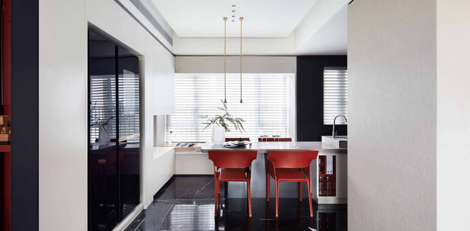 在這獨特的空間,紅色的椅子如一團燃燒的火焰,張揚著熱情與活力;金色的臺燈散發著奢華的光芒,仿佛在訴說著優雅的故事;黑色的柜子沉穩大氣,彰顯著內斂的個性。它們共同點綴著這個房子,