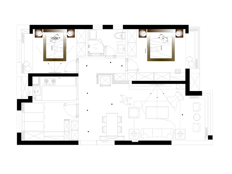 整體是直線設(shè)計,擴(kuò)大空間感,原木色的墻板給空間增加暖的感覺,通鋪900*900的理石紋理瓷磚,使整個空間更加通透,陽臺與客廳平頂拉門使獨立的陽臺融入整個客廳,是整個客廳增大。主臥室設(shè)計與客廳設(shè)計風(fēng)格形成呼應(yīng)讓整個空間達(dá)成一致,北面兩個臥室一個老人房一個兒童都采用暖色的色調(diào)讓北向的房子冬天沒有冷的感覺。