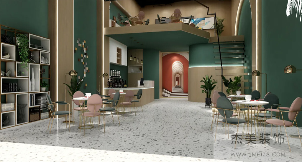 設計說明:此方案為北歐風格,主體采用北歐風的色系搭配,同時融入輕奢風格的代表元素,搭配原木柜體及墻面裝飾。增加空間的靈動感。通過飽和度較高的墨綠色乳膠漆和原木風格元素以及北歐配色的家具的對比,使得視覺沖擊感較強,對客戶的新引力增大,空間雖采用了較暗的顏色進行配色,但卻不失整體清新的感覺。樓梯踏步采用玻璃材質(zhì),在吸引客戶好奇心的同時,為空間整體效果增添了新鮮元素。較高的舉架,進行局部的二層搭建,流出部分區(qū)域作為挑空,增添餐位的同時,也不失整個空間的開闊。